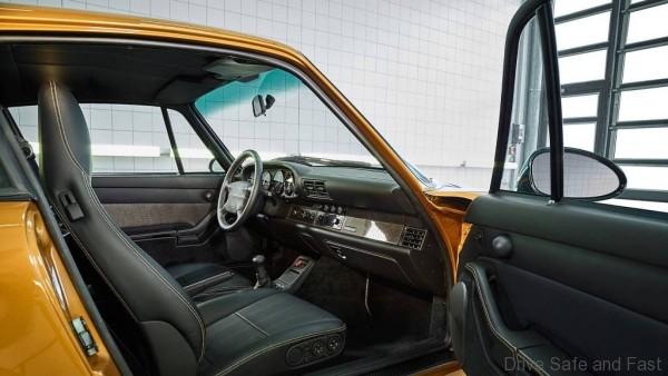 The design of the 993-generation 911 Turbo is based on an original bodyshell, and the vehicle’s appearance is just as unique as its history: Painted in Golden Yellow Metallic, it references the 2018 911 Turbo S Exclusive Series. The black wheels are highlighted by Golden Yellow design accents, while the seats and interior trim are finished in black with Golden Yellow details.