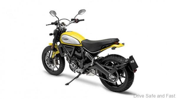 The Scrambler Icon is available in Atomic Tangerine with black frame and a black seat with grey trim or in classic ’62 Yellow with black frame and black seat with grey trim.