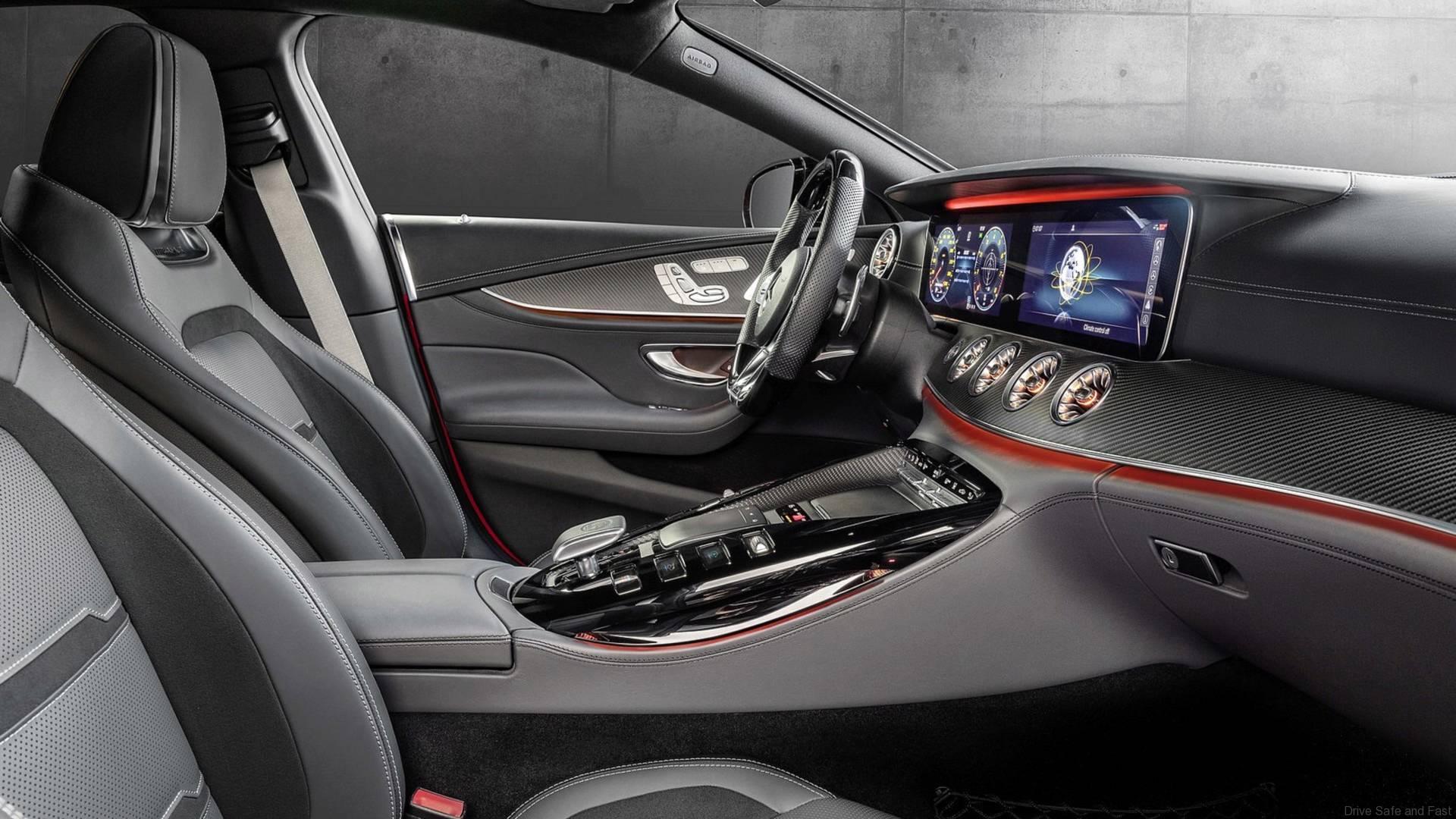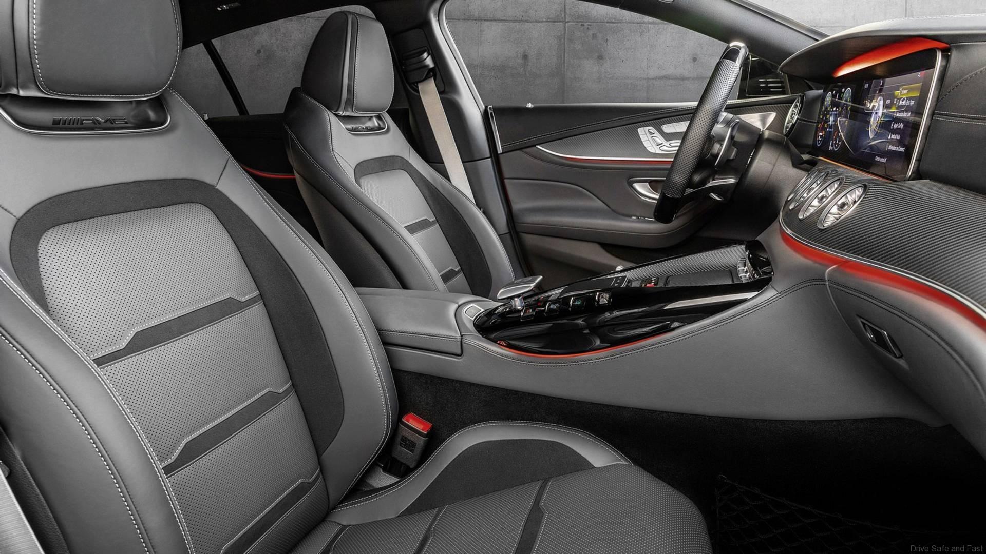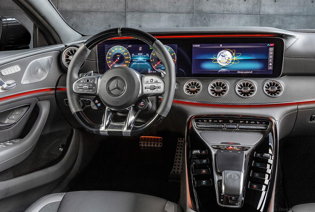 The characteristic exterior design, the innovative interior with three rear variants and the display switches in the centre console are identical to those in the AMG GT 53 4MATIC+. The same applies to the fast-shifting AMG SPEEDSHIFT TCT 9G transmission and the active aerodynamics with AIRPANEL air control system in the front apron and extending rear spoiler. Also identical are the standard appointments and the comprehensive selection of individualisation options through to the styling packages and large range of light-alloy wheels.