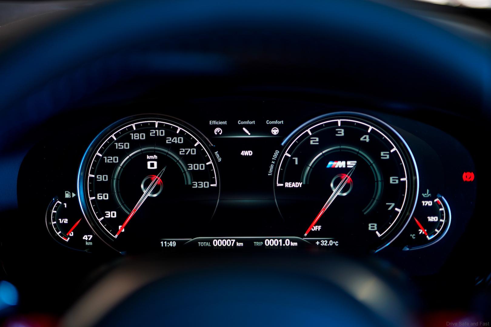 All switches and buttons can be operated with optimal ergonomic convenience, and all of the New BMW M5’s functions are sited directly in the driver’s line of sight. The large digital instrument cluster has an M-specific design and keeps the driver informed on the driving dynamic mode, M xDrive all-wheel-drive system’s setting and Drivelogic option currently engaged.