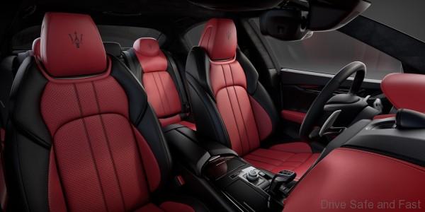 The interior of the “Ghibli Ribelle” features two-tone black/red dashboard, black door panels and red central armrest, black leather Sport steering wheel with tone-on-tone stitching, and steering wheel paddle shifters. The sporty seats (with 12 position memories) are in full premium leather, again two-tone in black/red with contrasting stitching, available exclusively for this limited edition.