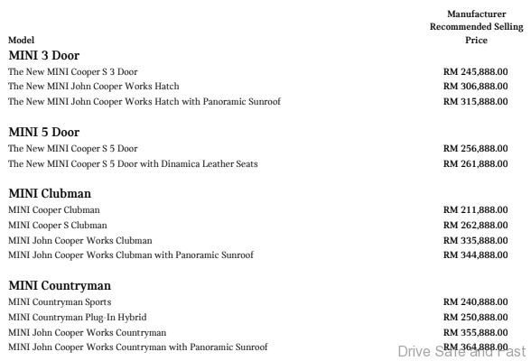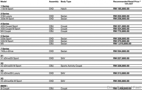 Here are the new prices for all BMW and MINI cars sold officially by BMW Group Malaysia. This is effective immediately, and accounts for the addition of 10% SST.