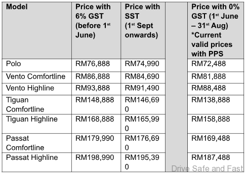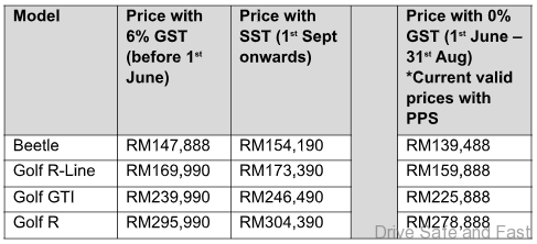 Volkswagen Passenger Cars Malaysia (VPCM) today announced the revised prices of all Volkswagen models with the implementation of the Sales and Service Tax (SST) on the 1st of September 2018.