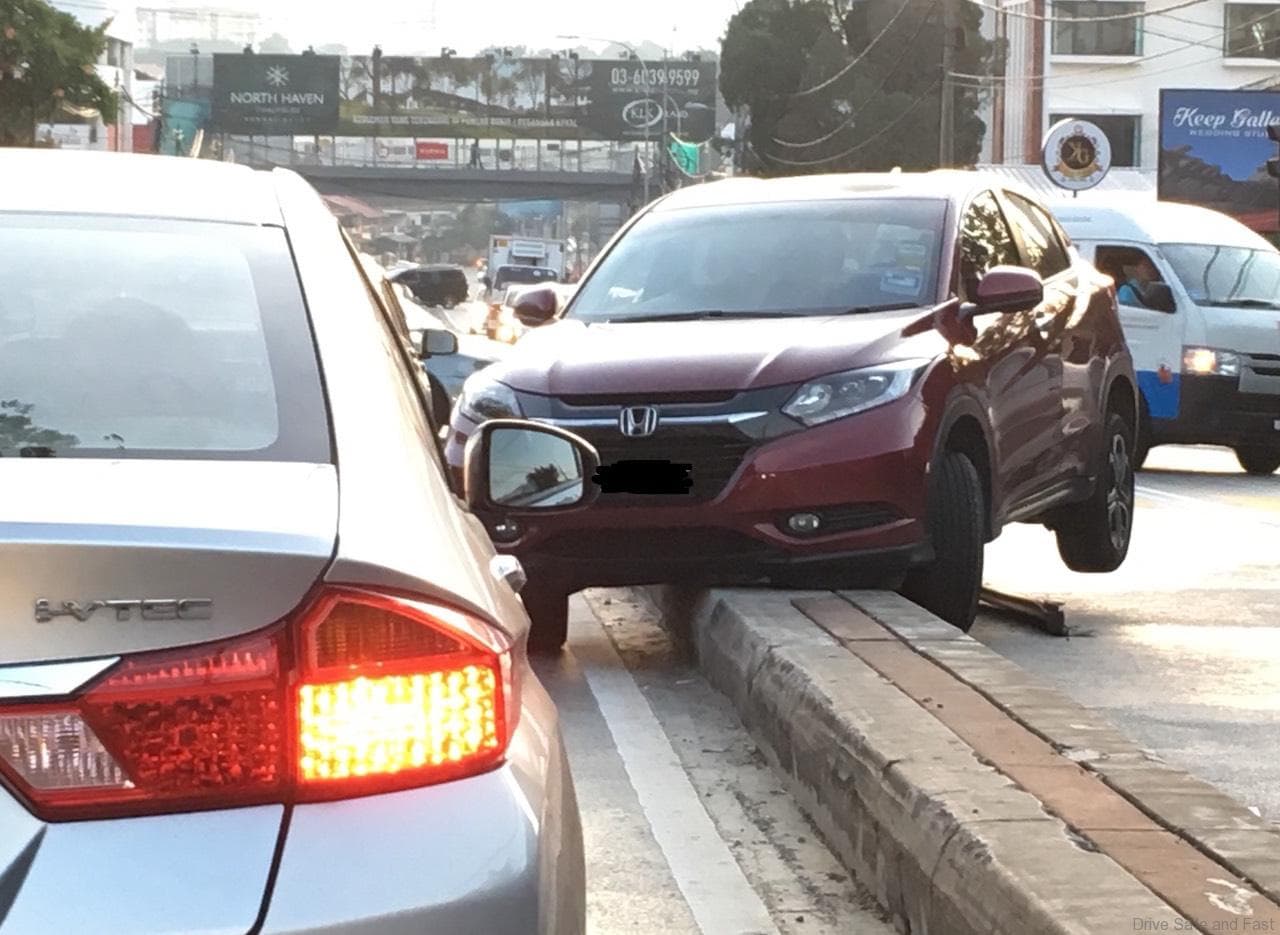 Early this morning we found this Honda HR-V sitting on a divider at the crossroads of PJ SS2 and Section 19. The driver was no where in sight and there were no skid marks present. So what happened?