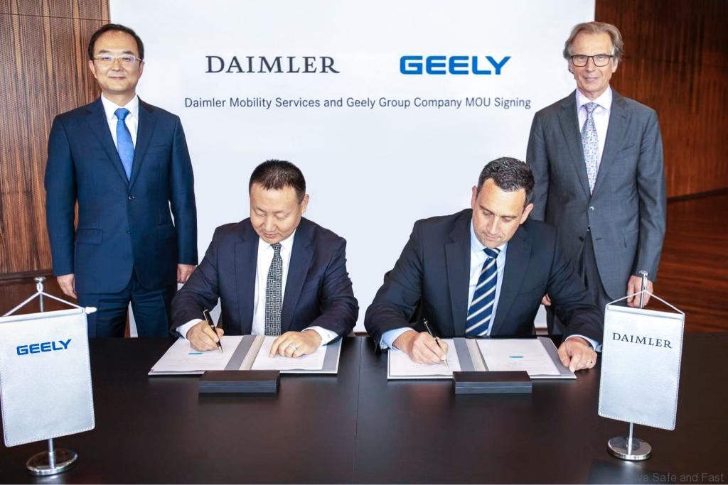 The signing of a Memorandum of Understanding at Daimler Headquarters in Stuttgart was attended by An Conghui, Geely Holding President, and Liu Jinliang, President of Geely Group Company, Geely’s new business division, as well as by Klaus Entenmann, CEO Daimler Financial Services AG, and Jörg Lamparter, Head of Mobility Services at Daimler Financial Services AG.