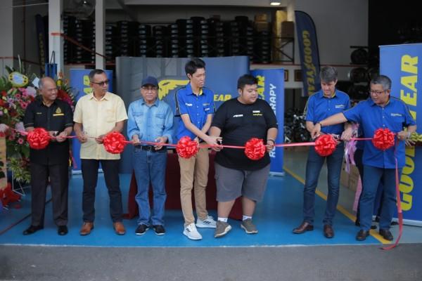 The outlet’s officiating ceremony was graced by Ben Hoge, Managing Director, Goodyear Malaysia Berhad; Chee Lip Choon, Sales Director, Goodyear Malaysia; Y.B. Tuan Mohd. Sany bin Hamzan, member of parliament for Taman Templer; Brigadier General Haji Mislan bin Anuar; Professor Dr. Ibrahim bin Hashim; as well as Iskandar bin Zabani and Loh Chee Hoe, co-owners of SDGR.