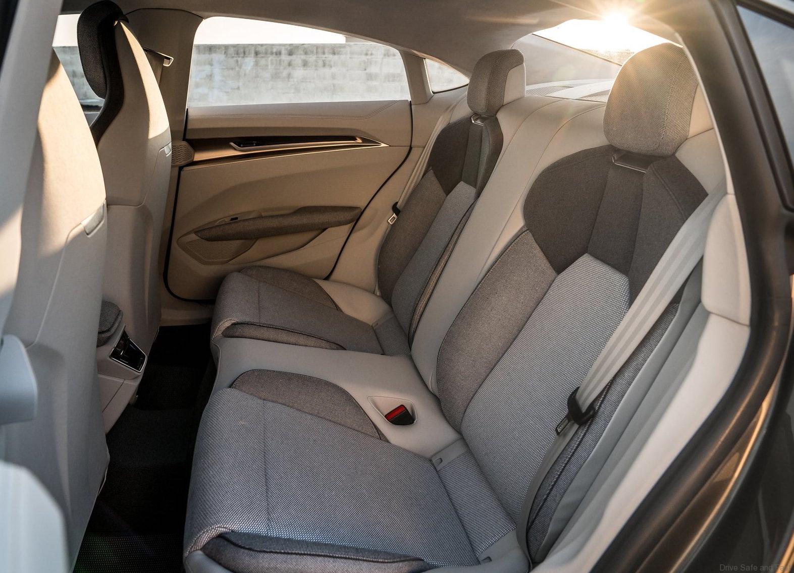 Four doors, four seats with 2.90 meters wheelbase – in the interior the Audi e-tron GT concept provides a large dose of everyday usability, coupled with a superb quality feel. The functional center of the interior is located at the front left, visibly focused on the driver’s seat. The center console, the large touchscreen in the top section and the line from the door rail and cockpit frame the driver’s workplace, perfectly incorporate the driver ergonomically with the controls and the infotainment of the Audi e-tron GT. The center console and the freestanding instrument cluster seem to float. Light colors in the top section of the cockpit and the gradually darker gradation through to the floor area create the impression of clear width. Sport seats inspired by motor racing in both rows of seats provide optimum lateral support even while cornering at speed.