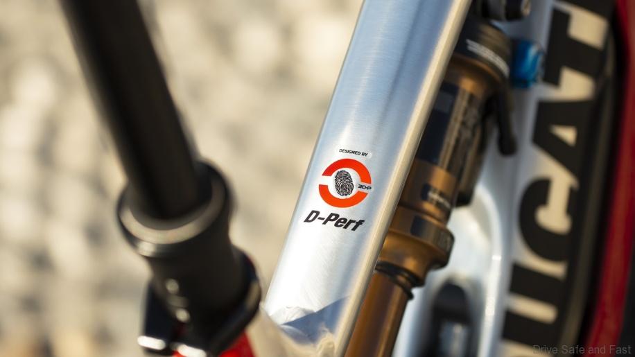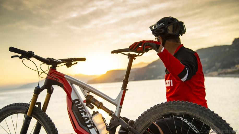 Created in partnership with Thok E-bikes, the Ducati MIG-RR features an aluminum frame, with a 504-Wh battery below the diagonal tube. The Shimano Steps E8000 system made specifically for mountain bikes provides the extra boost at speeds of up to 15.5 miles per hour. It has three levels of assistance: Eco, Trail and Boost. Trail and Boost modes can be customized for more or less assistance as needed. The bike is equipped with a Shimano XT 11-speed gear set and Kashima Factory Series Fox shocks.