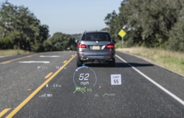 Also available as an option is a next-generation head‑up display which sets new standards with a resolution of 720 x 240 pixels and an extended projection distance. A system of lenses and mirrors projects a full-colour image measuring around 45 x 15 centimetres into the windscreen, which appears to float in front of the driver at a distance of around three metres.
