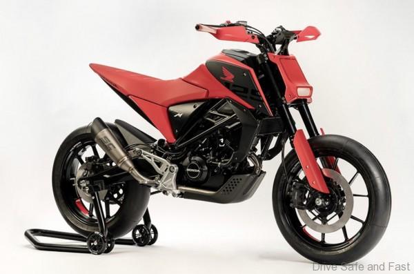 The CB125M is a naked street-focused machine in brilliant red, with more than a hint of ‘super-motard’ in its design. The futuristic lines are minimalist and ultra-sharp, with a seat section that runs seamlessly into a short, high tail, and a miniscule LED headlight.