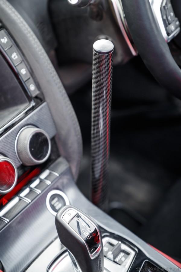 Inside, the luxurious Ebony Windsor Leather interior features Performance seats with embossed Chequered Flag headrests and a Dark Brushed Aluminium centre console trim finisher.