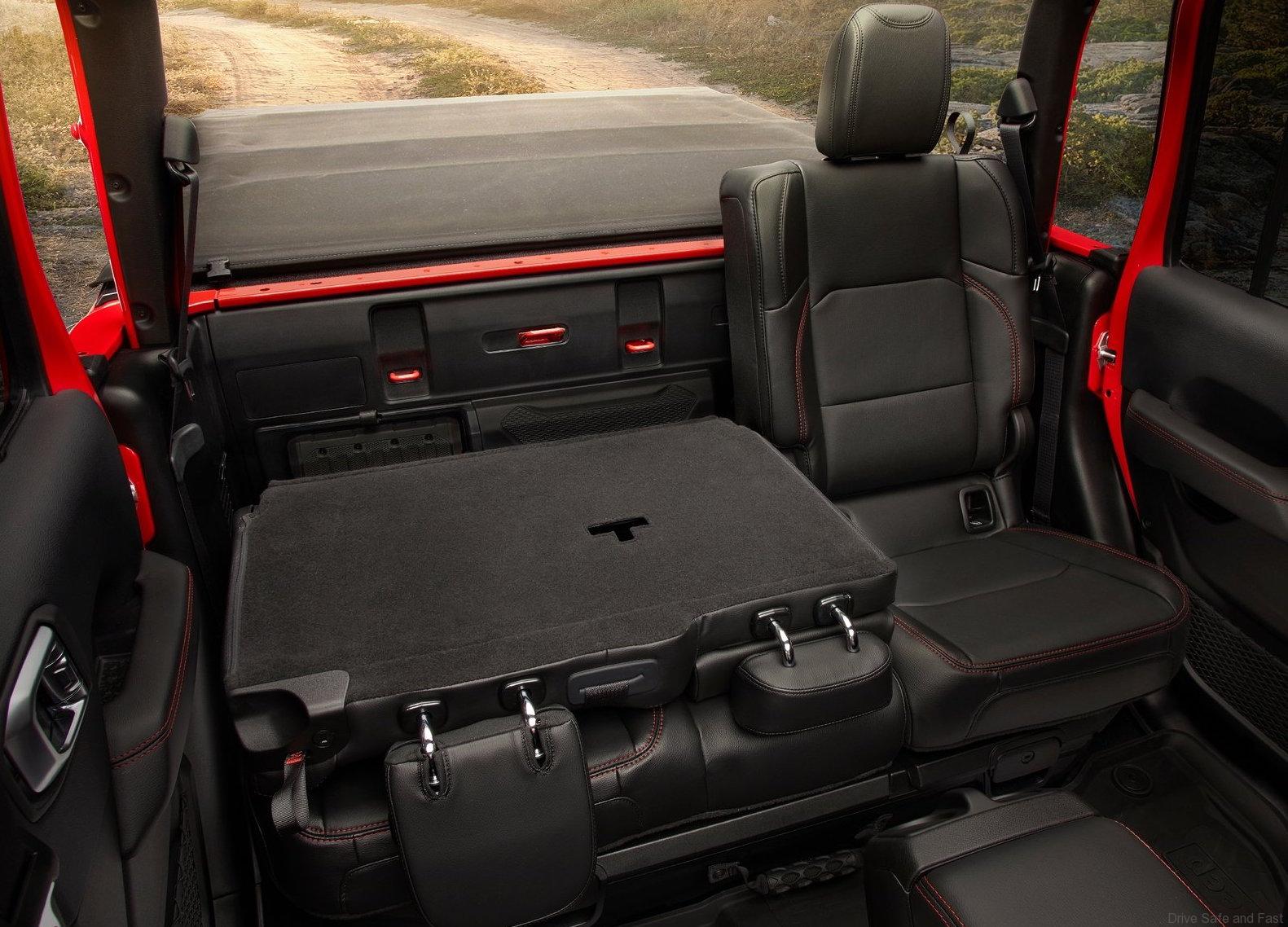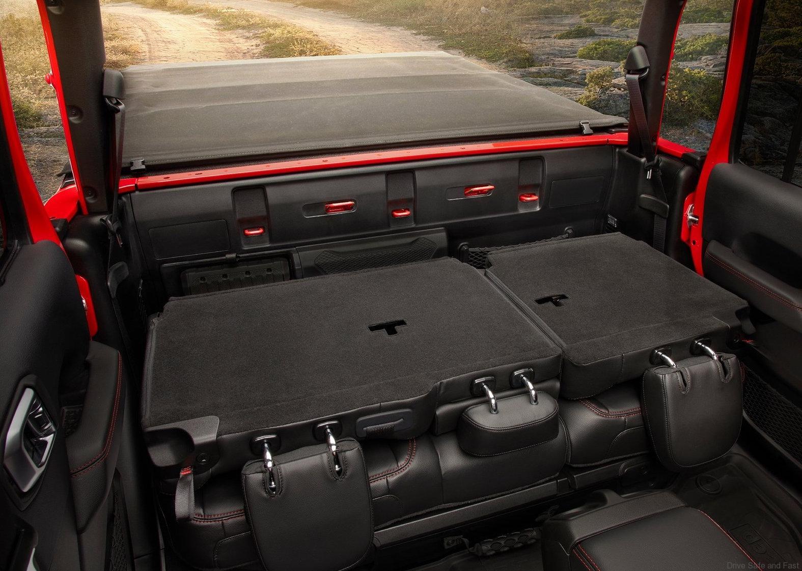 All-new rear seats feature high-quality premium materials giving the seats an athletic look that also delivers comfort and support. The rear seats, exclusive to Gladiator, feature segment-leading rear legroom and utilizes a unique design that can be locked in place to provide secure storage behind the seat back. The rear seats can be folded flat to access cab-back storage and provide a load floor for larger items.