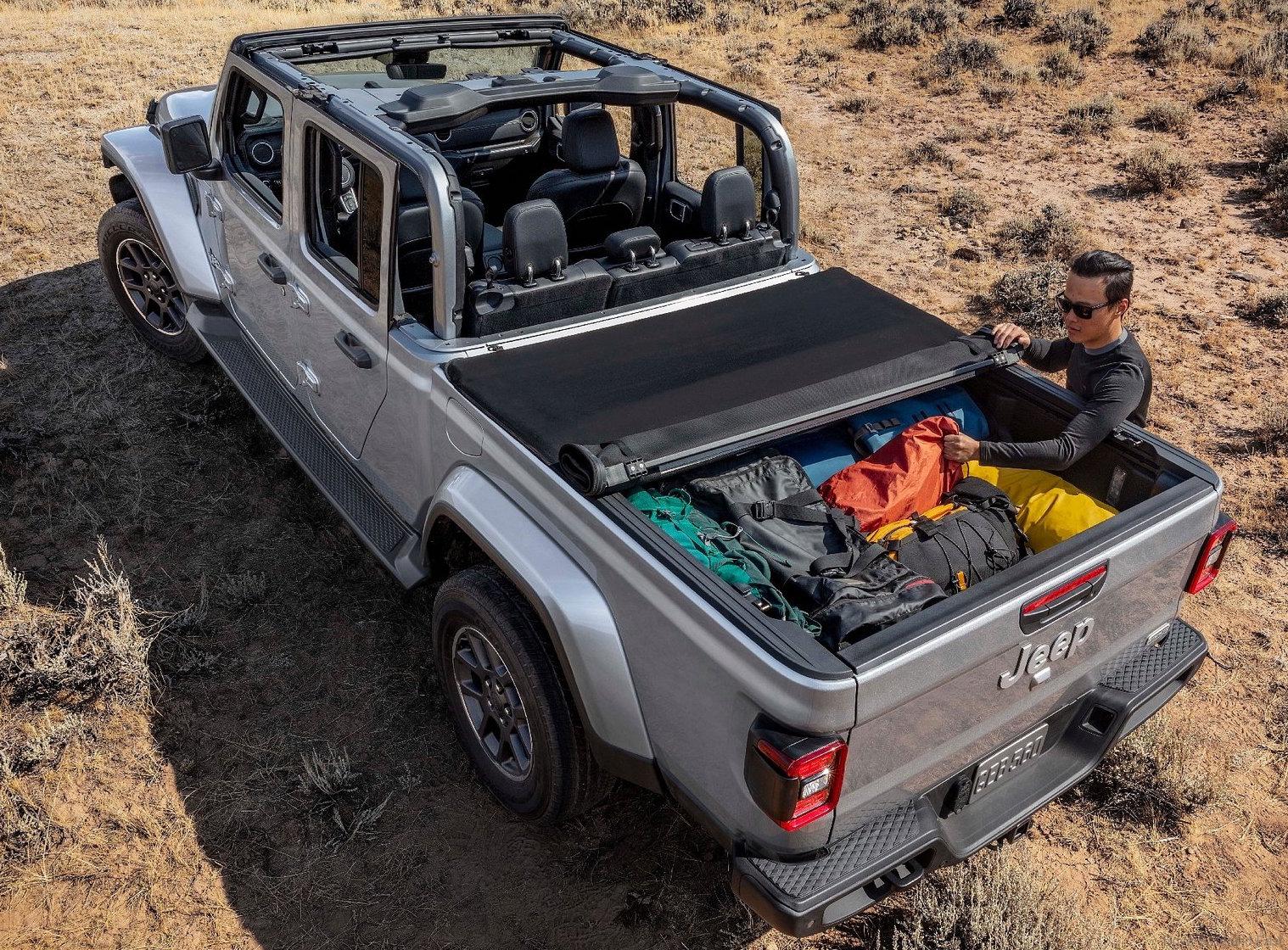 Gladiator Overland and Rubicon models share an available three-piece body-color hardtop option, offering a unique, premium appearance, while a black three-piece hardtop, available on all models, offers even more options for open-air driving. The two Freedom panels and quick-release latches enable a fast removal and installation of the hardtop. All hardtops feature a manual rear-sliding window.