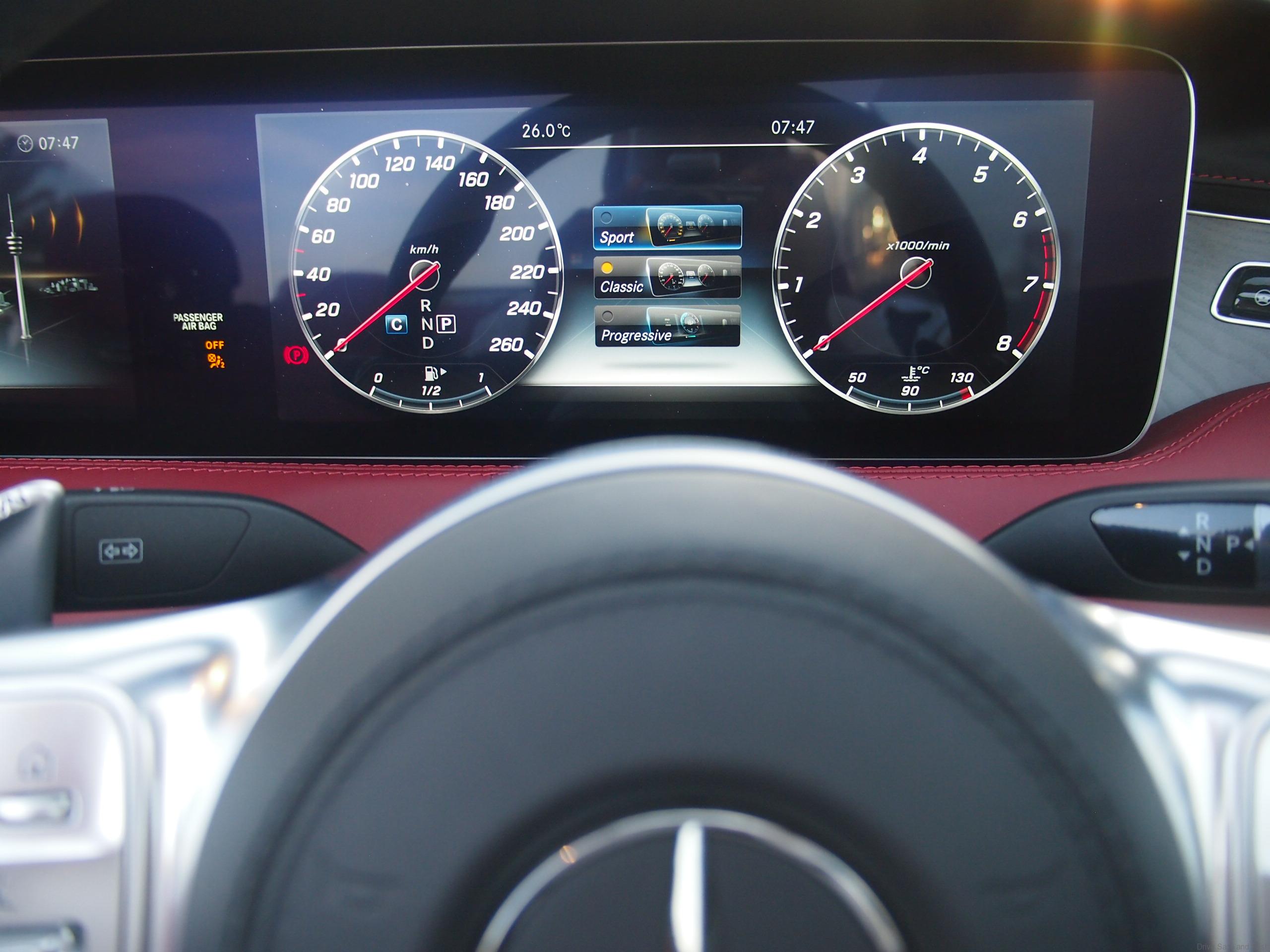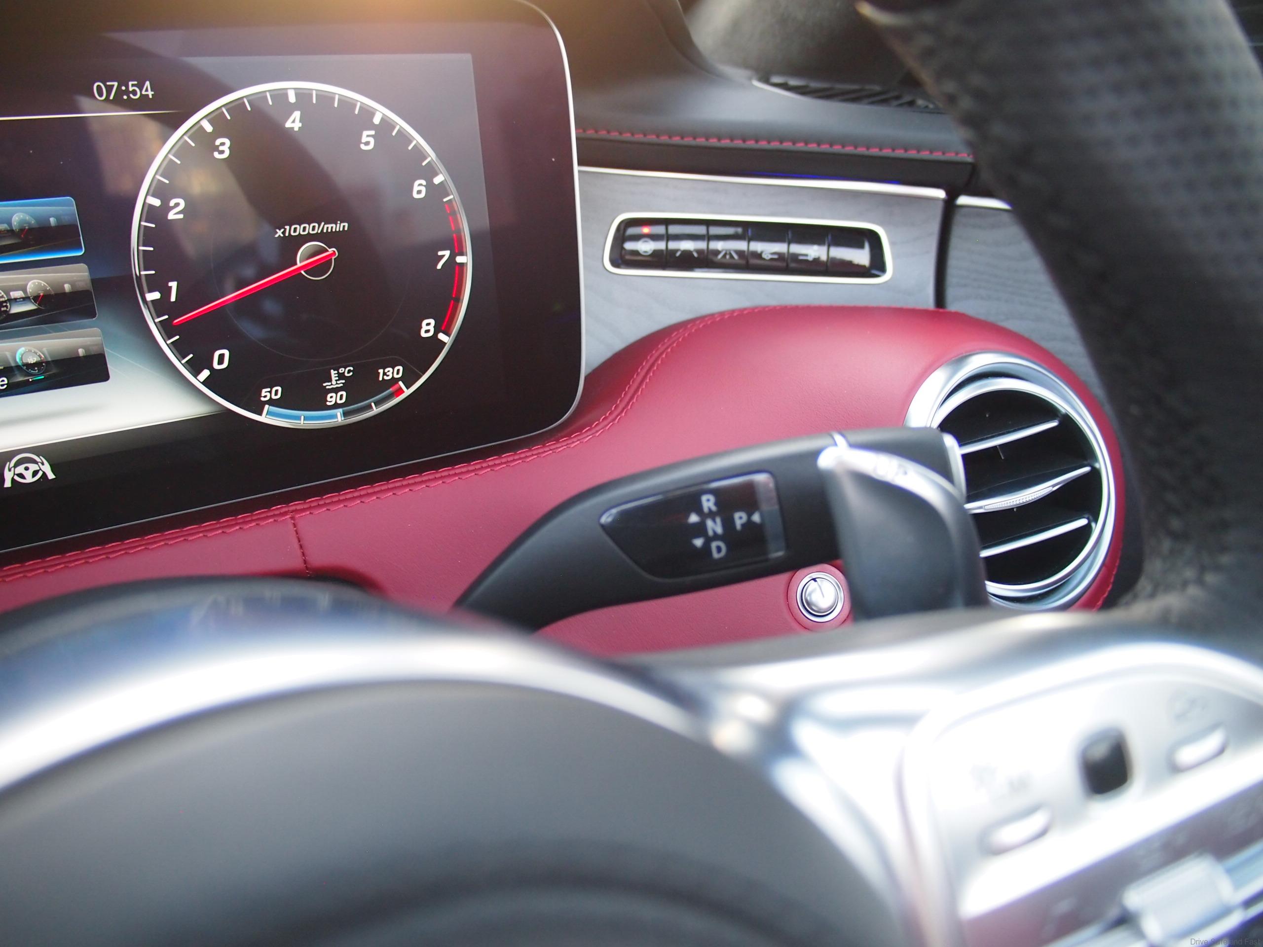 Mercedes designers are now moving quickly into full smartphone like instrument displays and you see it in full effect behind the steering wheel. The all-digital instrument screen offers three visually different styles in a tablet like screen offering a ‘Classic’, ‘Sporty’ or ‘Progressive’ view for the driver. Pick your fancy and change it to suit your passengrs mood when in heavy traffic. Also, you can enjoy an almost ‘home Hi-Fi’ musical experience with the available Burmester® high-end 3D surround sound system.