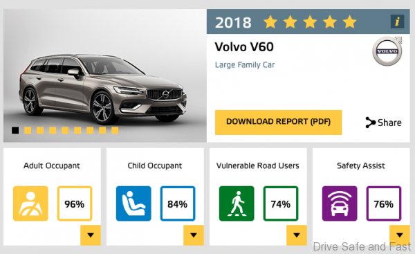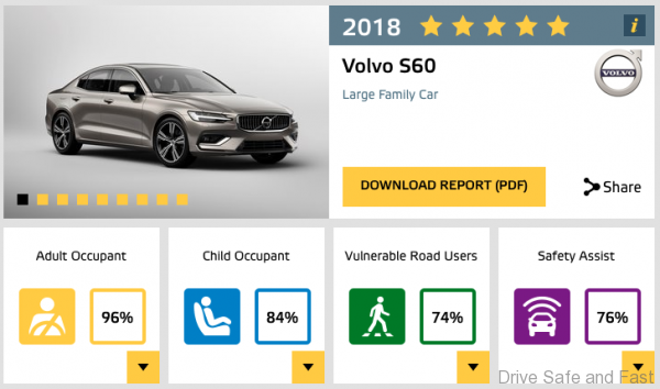The new Volvo S60 sedan and V60 estate today received the maximum five-star rating in their 2018 EuroNCAP safety tests, continuing a five-star streak for the Volvo line-up.