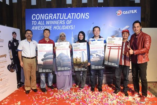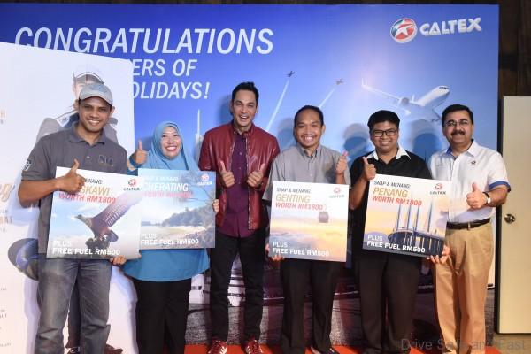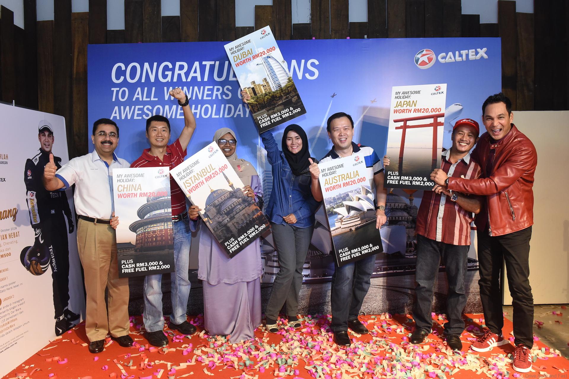 Five lucky persons were awarded all-expenses paid trips to Japan, China, Australia, Istanbul and Dubai for spending a minimum of RM40 at Caltex service stations. The lucky winners were Sia Lee Ping, Amiruzairie Bin Roskushairi, Mohamad Nazlishah Bin Othman, Nurhanani Binti A Rasid @ Ab. Durasid and Daniel Khaw Tze Ming.