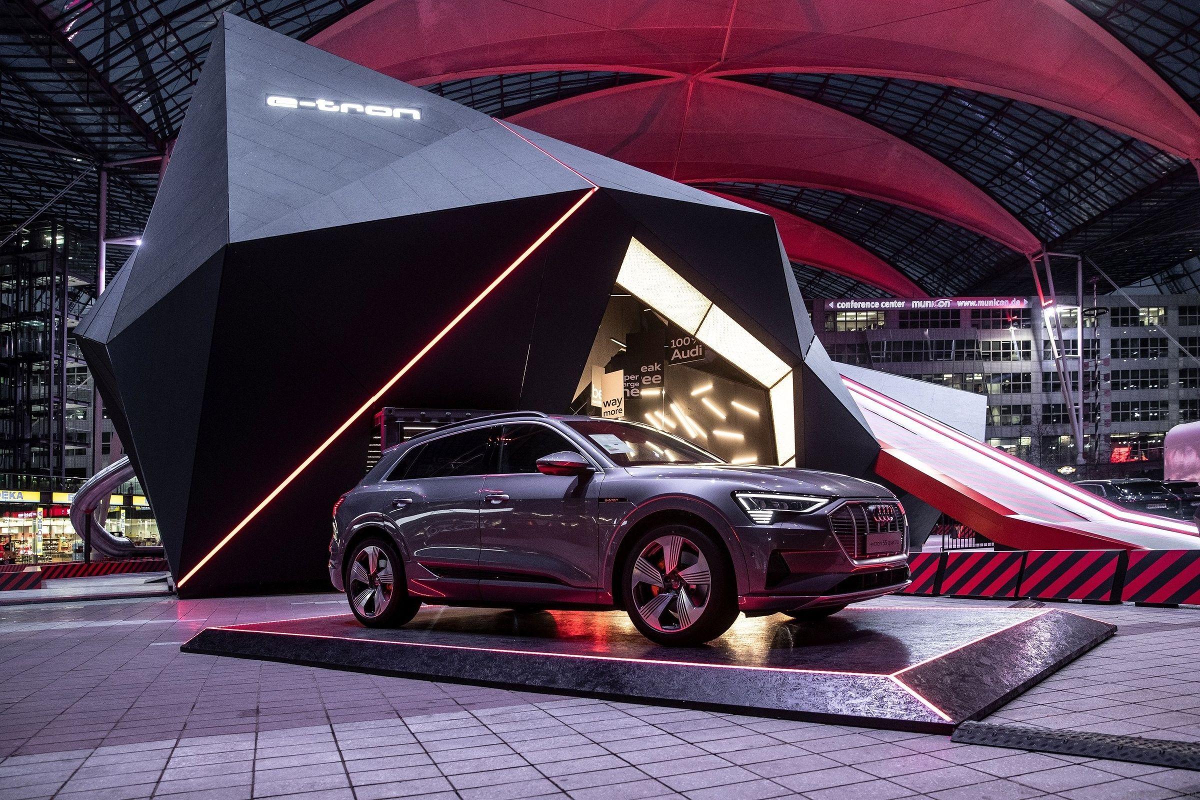 Audi is preparing a very special showcase for the e-tron prior to its official launch on the German market: The all-electric Audi has landed at Munich Airport in a multi-storey meteorite that covers a 630-square-meter footprint. Until mid-March, visitors and passengers can experience the new model for themselves along with its technology, its service ecosystem and other exciting future projects from Audi in the MAC Forum between Terminal 1 and Terminal 2.