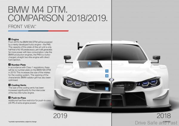 2019 welcomes the new Class 1 era in the DTM. BMW M Motorsport has built the most powerful DTM car ever: the BMW M4 DTM, has been modified in accordance with Class 1 regulations. At the heart of the car is the newly developed BMW P48 two-litre turbo engine. Combined with a significantly lighter car, the performance figures are nothing short of impressive and allow speeds of up to 300 km/h. We give you an overview of the main differences between this season’s race car and the 2018 version.