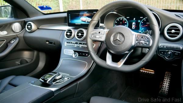At the showroom, you can also select one of three interior finishes with the C300. Our test unit came with the safe ‘black-on-black’ leather against open bore black ash wood trim. If you’re a little more adventurous, there are brown-on-black and red-on-black leather options too.