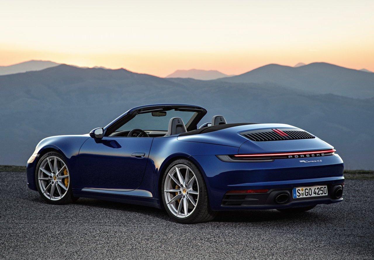 The new model echoes the modern lines of the Coupe, though it remains unmistakably a Porsche 911 in Cabriolet form. The fully-automatic soft top has an integrated glass rear window, while the soft top structure contains magnesium surface elements known as bows, which reliably prevent ballooning of the roof at high speeds. The soft top can be opened or closed at speeds up to 50 km/h. New roof hydraulics reduce opening time to around twelve seconds, while an electrically extendable wind deflector ensures that necks are shielded from wind impact.