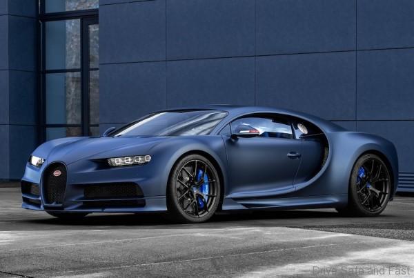 The body and the front end are made from carbon fibre and the Bugatti line and the typical Bugatti radiator from aluminium. The matt Steel Blue paintwork at the rear of the car, produced in a complex process, has a sheen like hot-rolled steel. The typical Bugatti line, the dominant “C” surrounding the passenger compartment, is also painted Steel Blue.