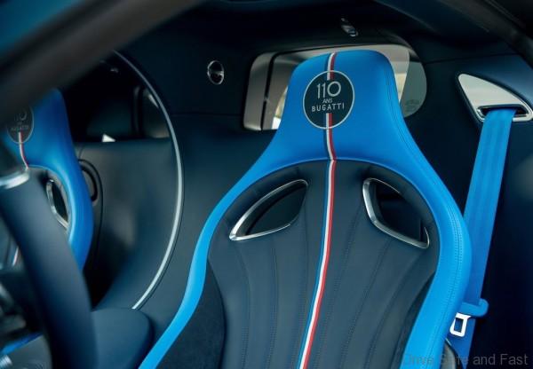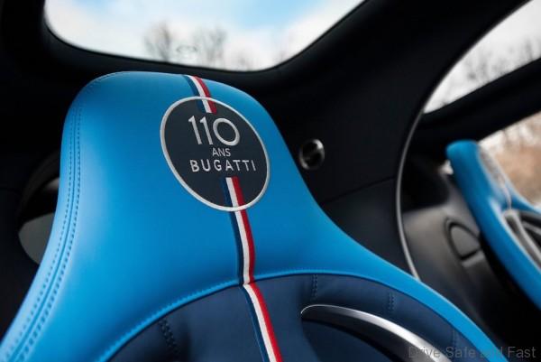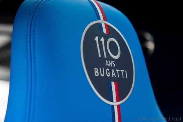 Carbon fibre is also be found on the nacelle, steering wheel, steering column and seat trims. The interior is upholstered in soft Deep Blue leather. The door trims, sides and seat areas of the sports seats are covered in Alcantara. Bright French Racing Blue elements on the contours of the seats, stowage compartments, belt trims and the leather of the window buttons provide a sporting contrast. The key of the “110 ans Bugatti” is surrounded by three sewn leather patches in the colours of the tricolour.
