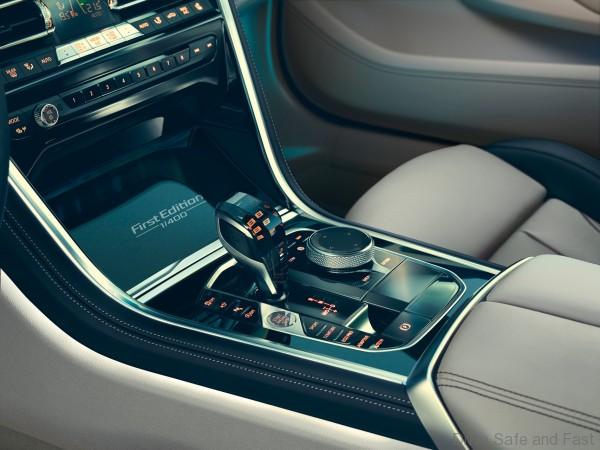 Inside the car, BMW Individual interior trim strips in a Black Piano finish, which are located in the centre of the cockpit, bear the lettering “First Edition 1/400”. Moreover, the Bowers & Wilkins Diamond Surround Sound System and the Crafted Clarity glass applications on the start/stop button, the iDrive Controller, the volume control and the illuminated gearshift lever complement the luxurious interior ambience.