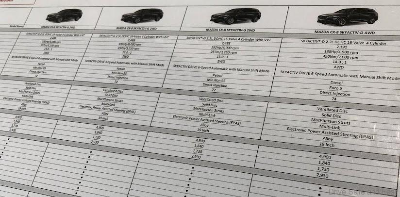 The Mazda CX-8 has a fuel tank capacity of 74 litres and combined fuel consumption figure of 6.0L for AWD variants; meaning the CX-8’s cruising range is well over 1,200km. The Mazda CX-8 will be sold in Malaysia at a price that will be between RM180,000 to RM195,000. It will be well-appointed, with leather trim and real wood featuring on the Limited-grade; culminating in a luxury package that indulges its occupants. The CX-8 wheelbase is 2930mm with a width of 1840mm, making it larger than the very popular CX-5 to allow for the 3rd row of seats.