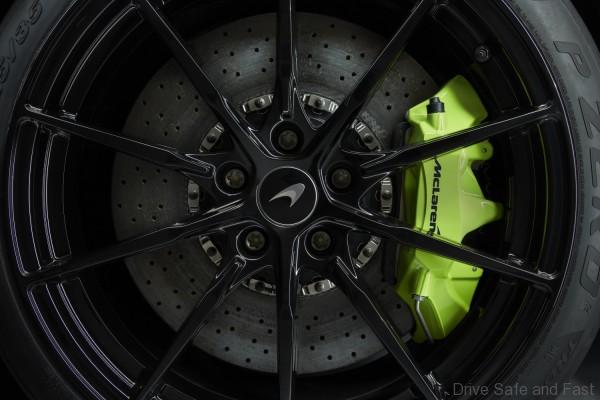 Besides that, the 600LT has been specced with carbon fibre options, including the MSO Defined Visual Carbon Fibre Front Fendre Louvres. These elements have a satin finish, just like they did on the 675LT. There’s a MSO Bespoke Carbon Black retractable hard-top and 10-spoke Ultra Lightweight forged alloy wheels with a gloss black finish.