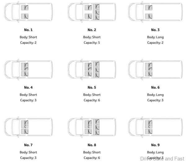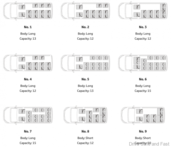 Toyota is offering 2 body types: Normal with a Standard Roof and Long with a High Roof.