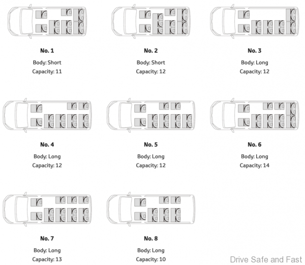 A huge variety of internal layouts are being offered. If you’re looking to move people, up to 17 occupants can fit in the new Hiace.