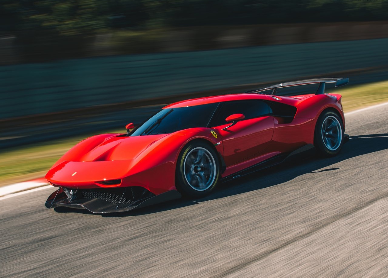 The Ferrari P80/C is made entirely from carbon-fibre, only the parts with strictly technical functions have been left bare, while the main car body has been painted a bright Rosso Vero.
