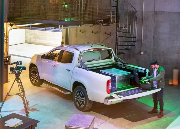 - Storage box – This roomy, lockable and scratchproof box has a capacity of 156 litres and protects the contents from the effects of the weather and from theft. It is rainproof and easy to clean – including with a pressure washer or in a car wash. Attached to the load bed’s side load-securing rails, it can be positioned anywhere in a longitudinal direction. The storage box will be available from early 2018.