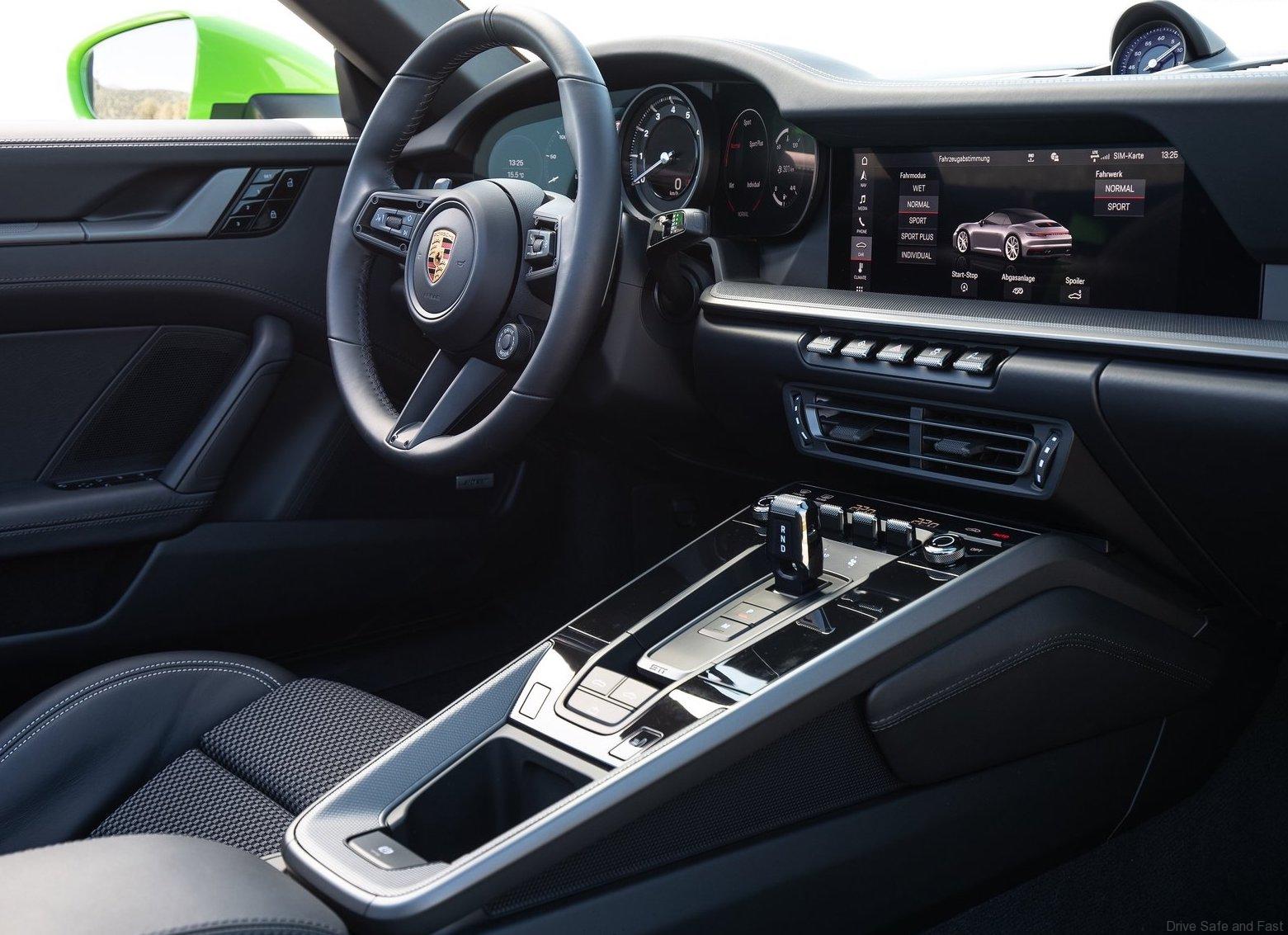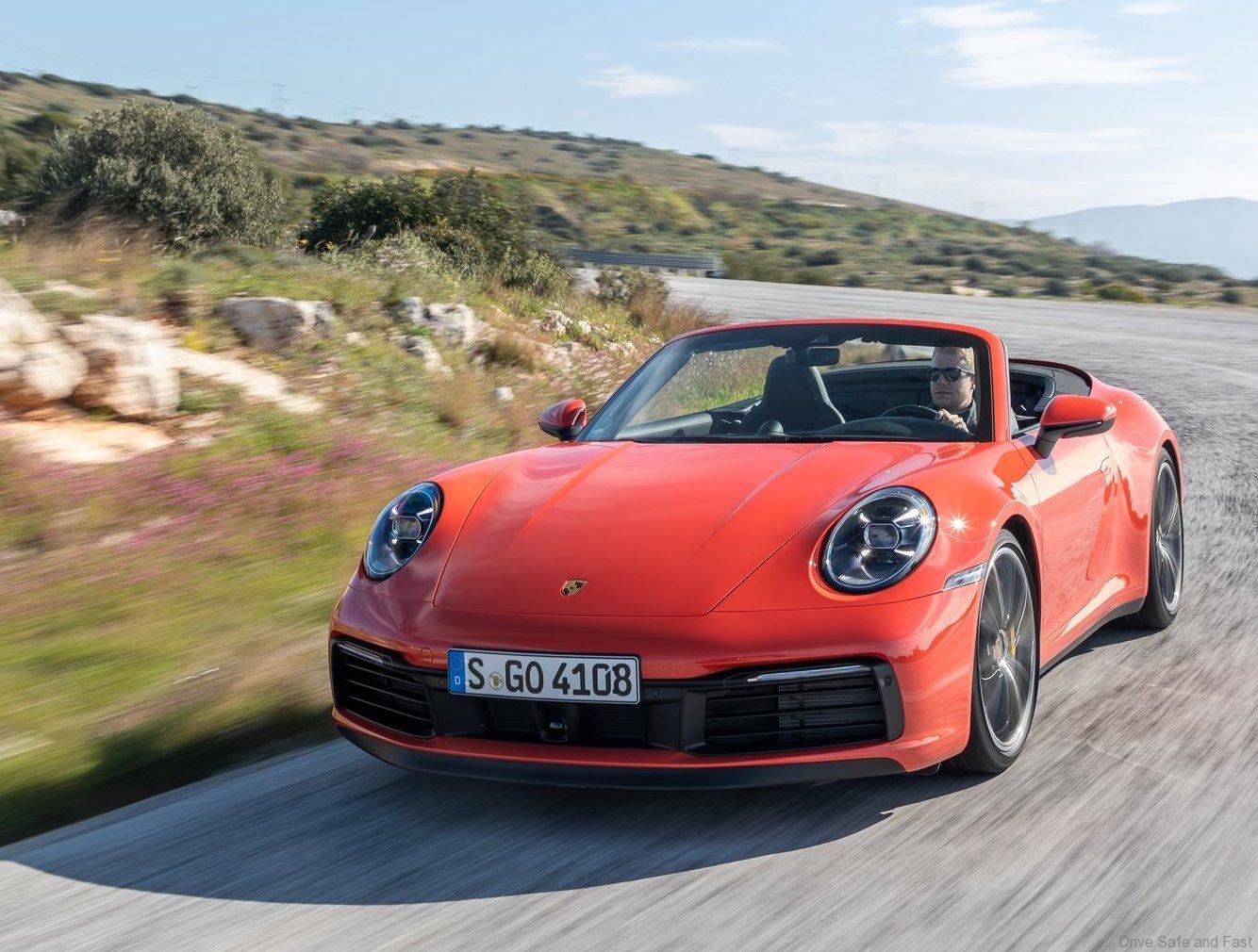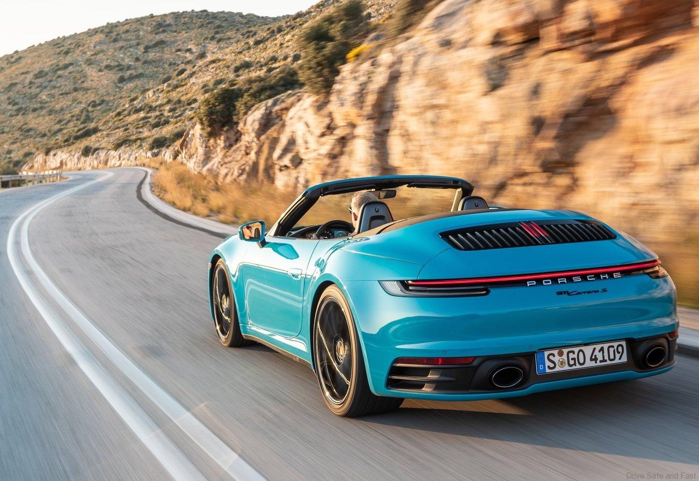 Press Released Here: The new 911 is wider, more self-confident and more muscular. The contours are familiar and unmistakably based on the Porsche design DNA, but are nevertheless still strikingly new. The dimensionally stable fabric hood of the Cabriolet does nothing to change that. It picks up the roof contour, the so-called flyline, and continues it to the rear of the vehicle. The fabric hood is available in a choice of colours: black, dark-blue, brown and red. Standard new LED headlights and a bonnet in the style of earlier 911 generations combine future-oriented design elements with further-developed features that are typical for the brand. The new 911 models have an even more distinctive appearance with up to 45-millimetre wider wings and larger wheels on the rear axle. The vehicle width is emphasised by the newly structured rear end with new, continuous LED light bar and a distinctive third brake light.
