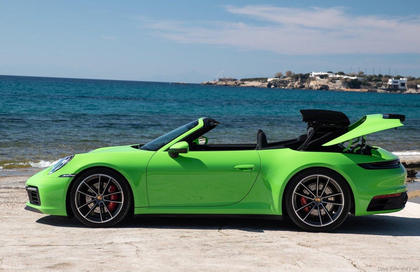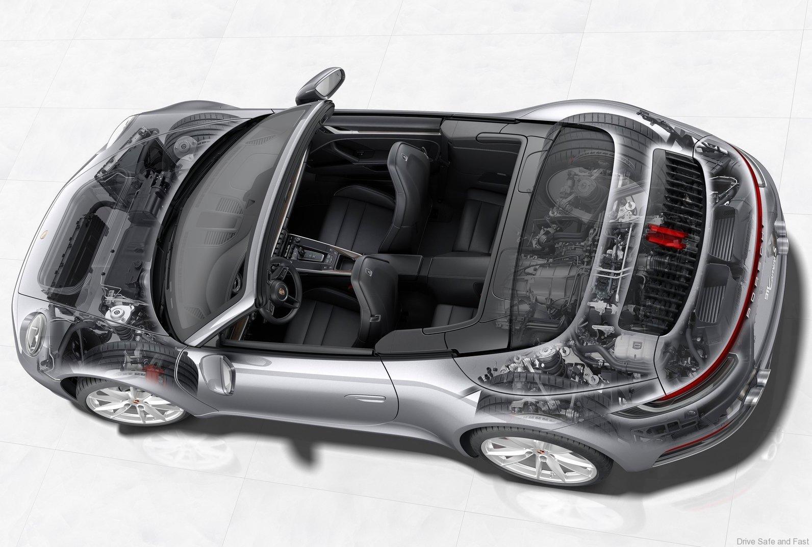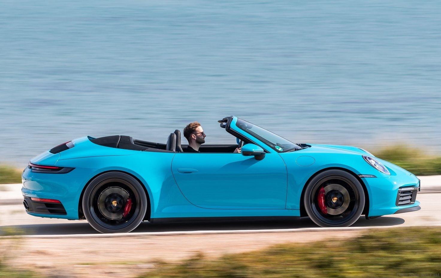 Press Released Here: The new 911 is wider, more self-confident and more muscular. The contours are familiar and unmistakably based on the Porsche design DNA, but are nevertheless still strikingly new. The dimensionally stable fabric hood of the Cabriolet does nothing to change that. It picks up the roof contour, the so-called flyline, and continues it to the rear of the vehicle. The fabric hood is available in a choice of colours: black, dark-blue, brown and red. Standard new LED headlights and a bonnet in the style of earlier 911 generations combine future-oriented design elements with further-developed features that are typical for the brand. The new 911 models have an even more distinctive appearance with up to 45-millimetre wider wings and larger wheels on the rear axle. The vehicle width is emphasised by the newly structured rear end with new, continuous LED light bar and a distinctive third brake light.