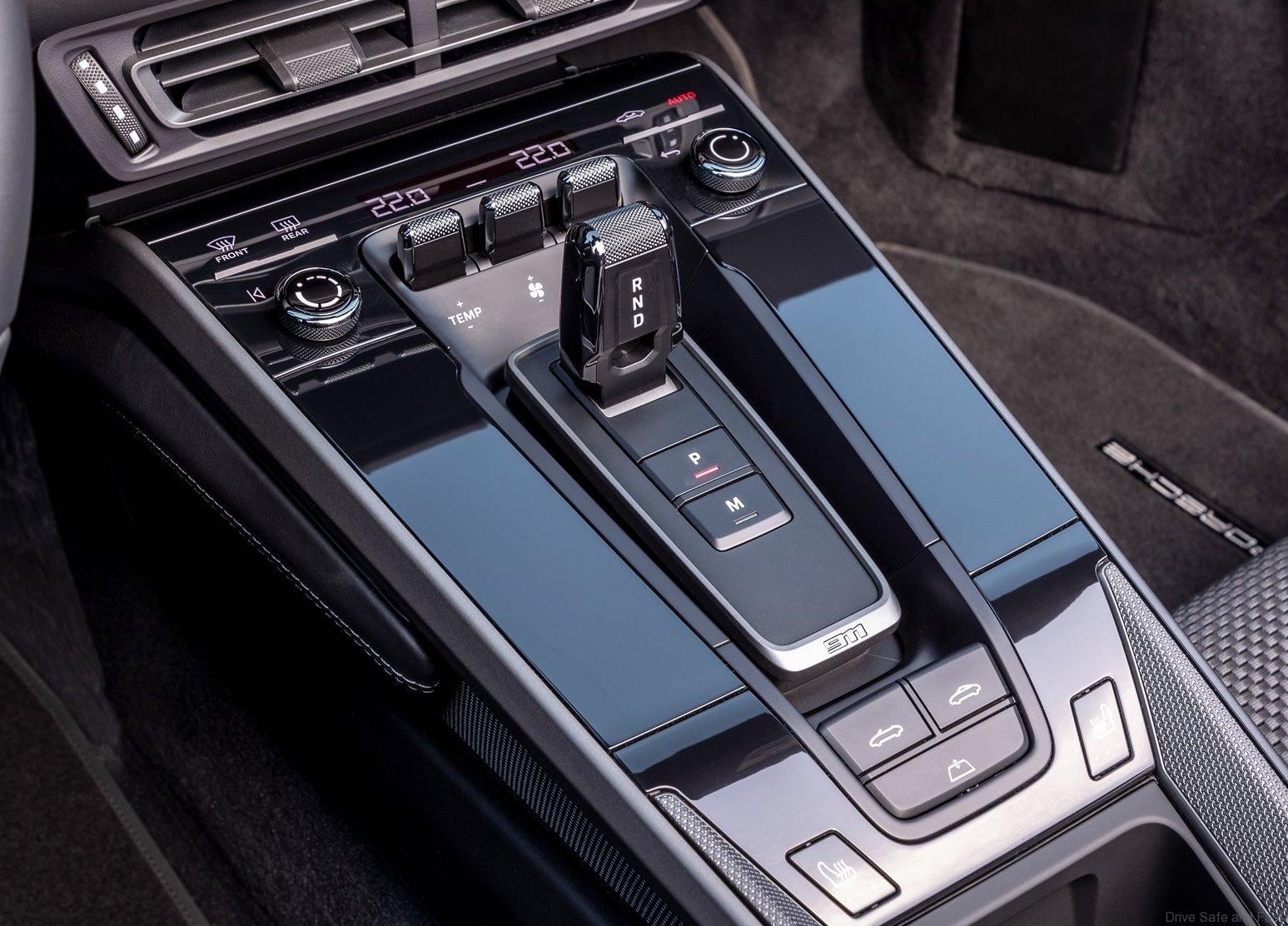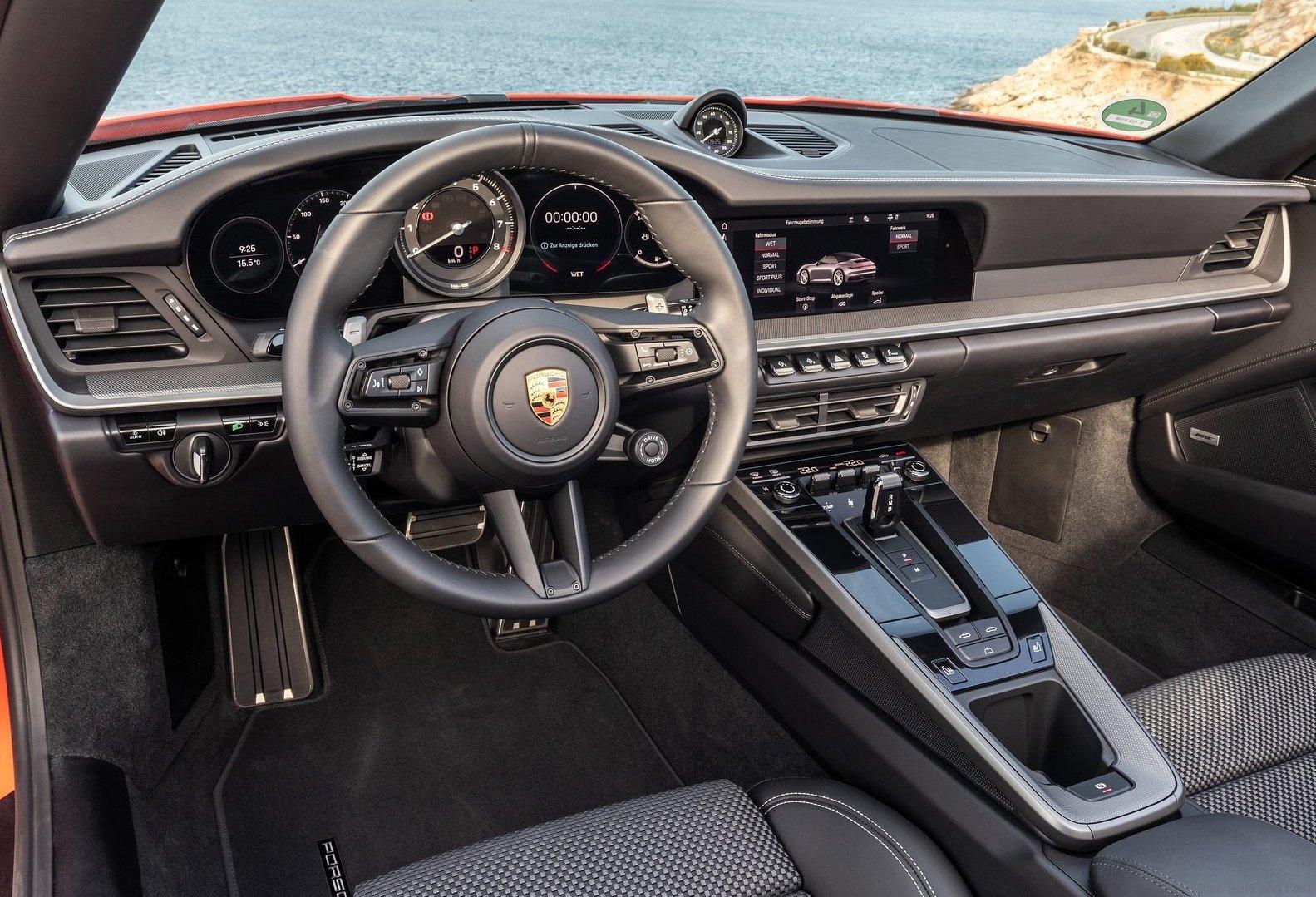 For the new 911, the focus was on further development of the turbocharged flat-six engines. In addition to compliance with the latest emission standards with a gasoline particulate filter (GPF), a central goal was to achieve further enhanced performance. New, larger turbochargers with symmetrical layout and electrically controlled wastegate valves, a completely redesigned charge air cooling system, increased compression and use for the first time of piezo injectors combine to attain engine improvements in all relevant areas: responsiveness, power, torque characteristic, efficiency and revving ability. In addition to the 22 kW (30 PS) increase in power to 331 kW (450 PS) at 6,500 rpm, the engine offers 30 Nm higher torque of 530 Nm between 2,300 rpm and 5,000 rpm.