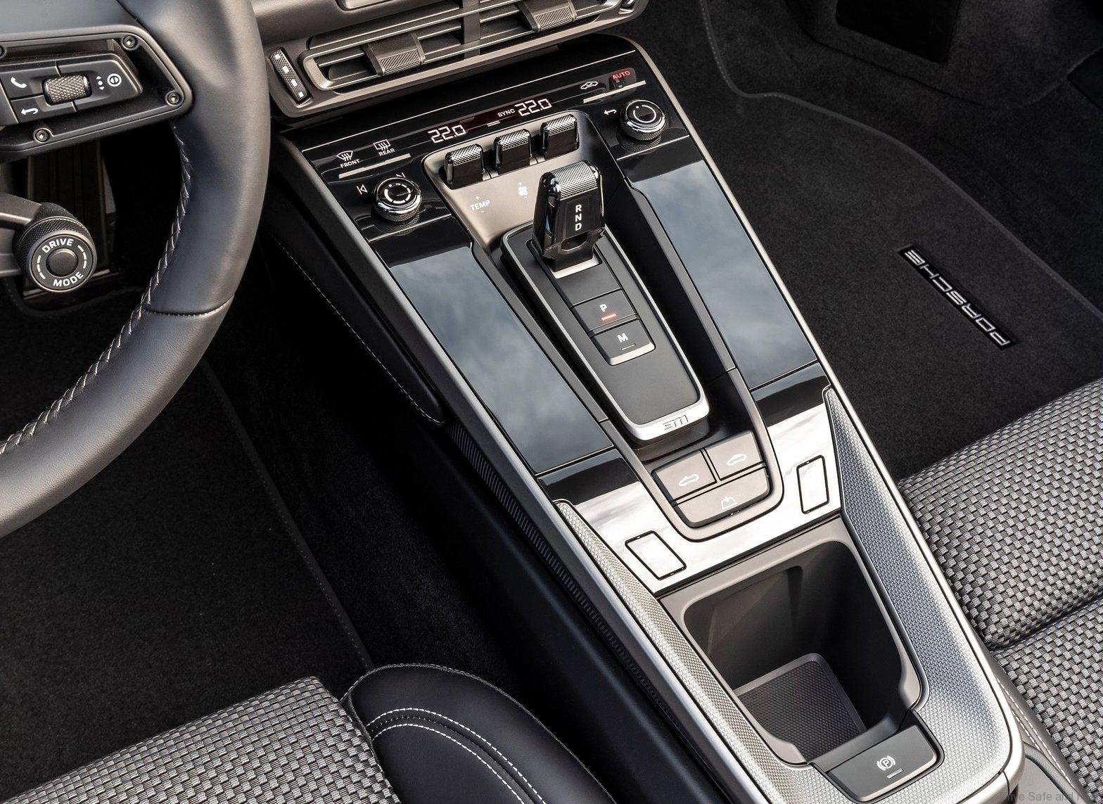 The functionality of the selector lever for the Porsche Doppelkupplung (PDK) has been reduced, and the lever is now much more compact than before. This is made possible by purely electronic control of the new eight-speed PDK. The form and surface texture have been adapted to the design of the touch switches. The clearly structured, puristic door panelling combines elegance with a high level of functionality and offers plenty of storage space.