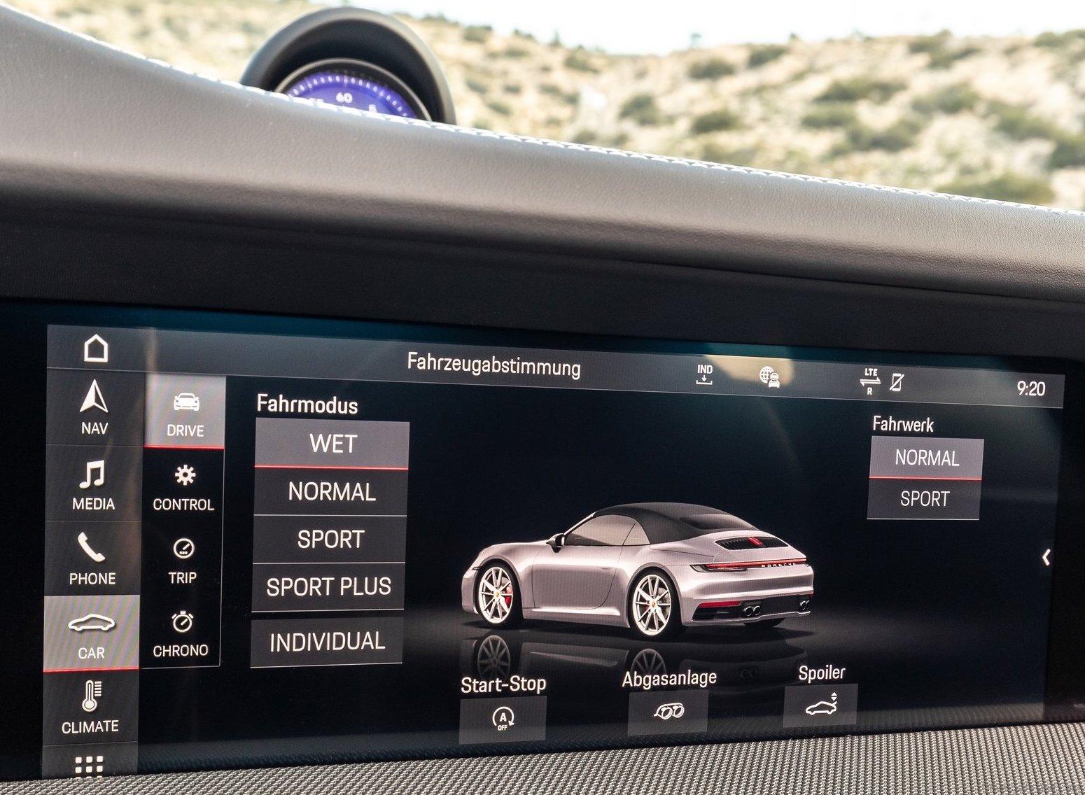 The new Porsche Communication Management (PCM) with online navigation makes it much easier to control the extended Infotainment functions. Numerous vehicle functions that were previously operated via the instrument cluster or centre console can now be configured in a graphically attractive way via the 10.9-inch touchscreen display of the PCM in the new 911. Map data for most European countries is pre-installed. Perspective map views and 3D navigation maps are available in many cases.