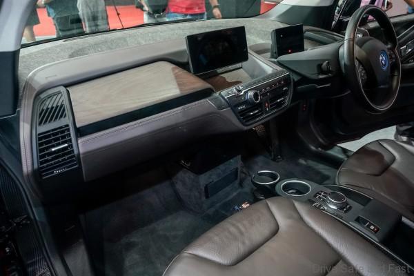 The model is furnished with the BMW i Interior Design Suite that features a sophisticated instrument panel and exquisite upholstery in Dark Truffle Leather Vernasca. The First-Ever BMW i3s is complete with Carum Spice Grey headliner and a premium leather steering wheel.