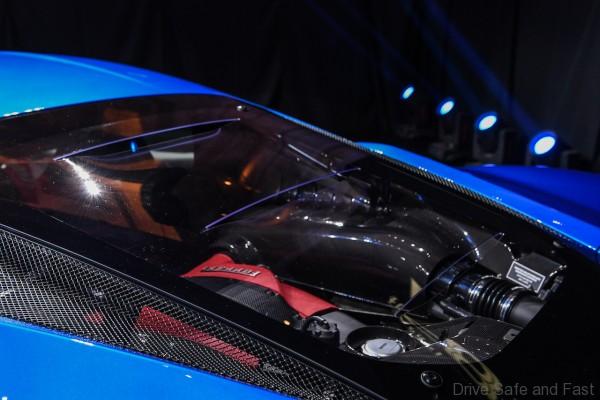 At the rear, a new Lexan polycarbonate screen acts as a showcase for the engine à la the F40.