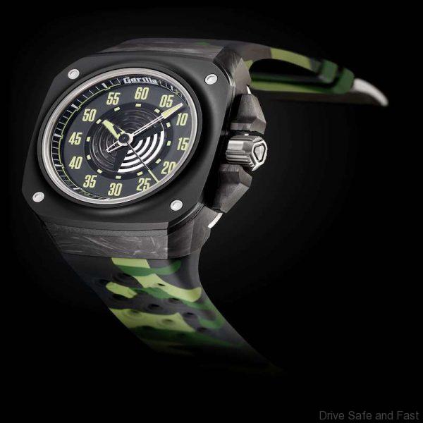 The Phantom Black comes with a Camo rubber strap, Gorilla’s touch of urban culture with unblemished stealthiness. In RS White, the Fastback’s distinctive bezel design is amplified with scratch resistant semi-glossy white ceramic. Acid Green takes on the hyper car color inspiration by fusing lively acid green and polished black ceramic to bring out the special structure of layered forged carbon.