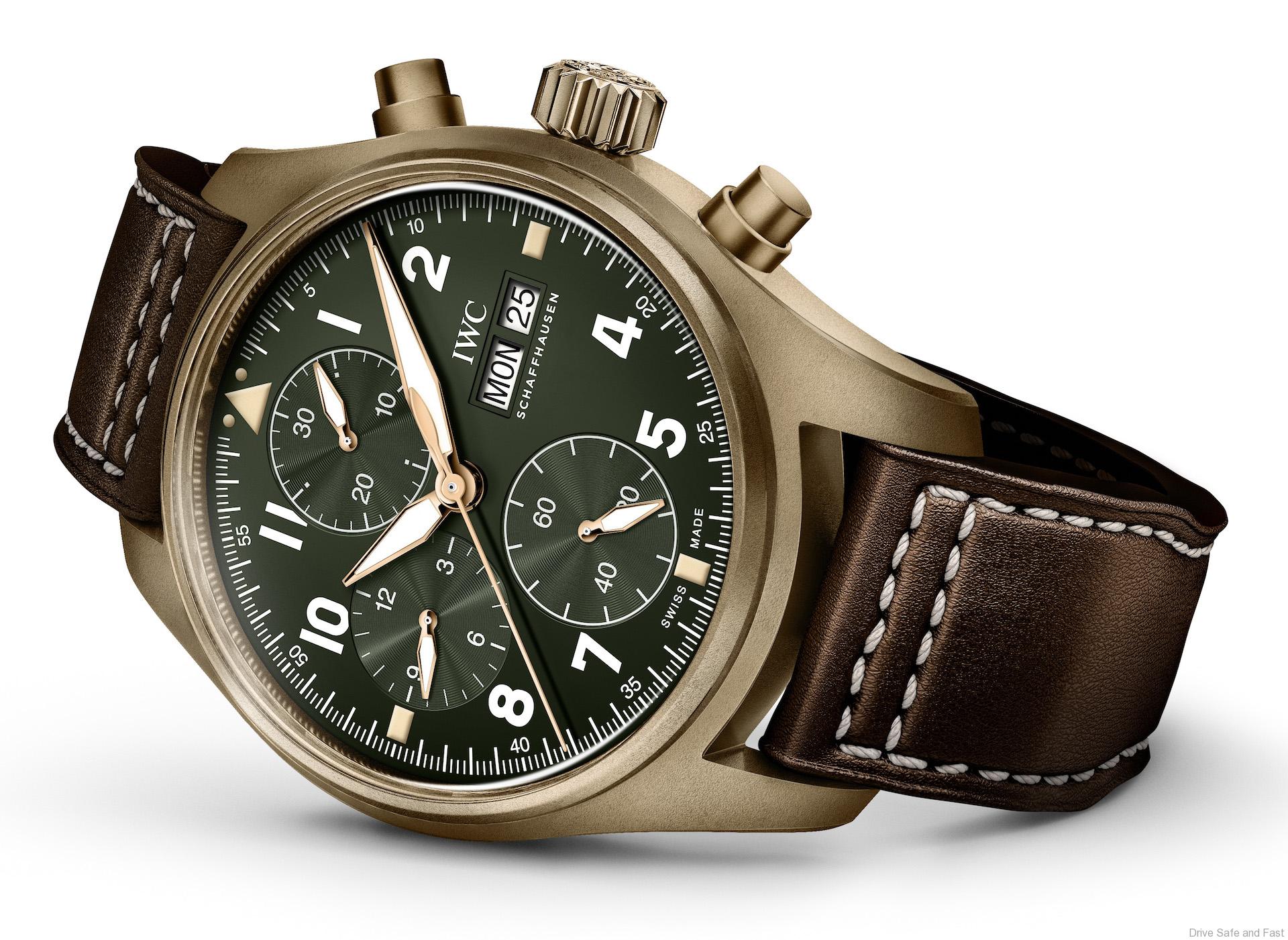 IWC is releasing this film as part of an extensive global advertising campaign revolving around its new Pilot’s Watches. In the movie, Lewis Hamilton is driving the Mercedes-Benz Silver Arrow W 125 around the Goodwood Race Track, when a Spitfire aircraft overtakes him. As the Spitfire approaches again in low flight, he pushes the “stop” button on his Pilot’s Watch Chronograph Spitfire.