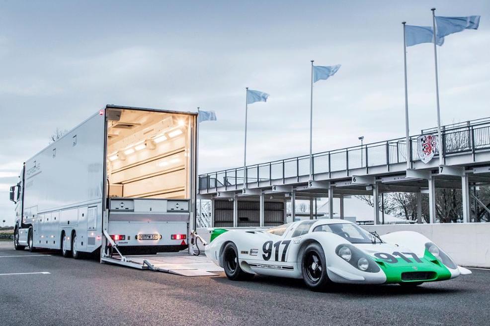 Four world premieres at 77th Goodwood Members Meeting in Great Britain: For the first time, Porschepresents four driving examples of the 917 around the challenging Goodwood Motor Circuit – including the first 917, chassis 001 which has been restored just in time for this year’s jubilee. Furthermore, the 917/30-001 celebrates its debut after its restoration in Sussex. The 917-001 and the 917/30-001 meet for the first time at a driving event.
