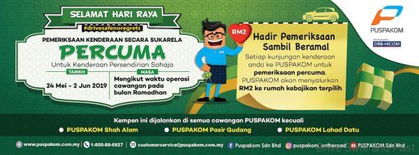 Puspakom has organized this campaign in conjunction with Hari Raya Aidilfitri 2019 as part of the company’s social responsibility in raising awareness on the safety of vehicles for Malaysians, especially for the owner and driver of the vehicle. The campaign, which will last for 10 days starting May 24 until June 2nd, 2019 will be conducted in all 54 PUSPAKOM Vehicle Inspection Centers nationwide during the normal operation time of each inspection facility.