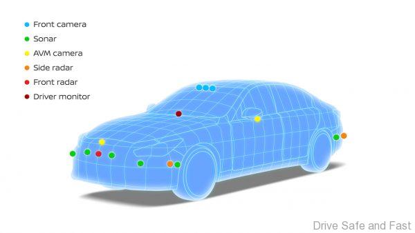 The vehicle uses a combination of cameras, radars, sonars, GPS and 3D high-definition map data (HD map) to provide 360-degree, real-time information of the surrounding environment and the vehicle’s precise location on the road. The system uses this information to provide a smooth driving experience, similar to that produced by an experienced driver. A monitoring system in the cabin continually confirms that the driver’s attention is on the road.