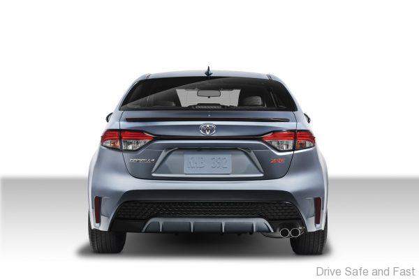 The rear leaves a distinct lighting impression as well, with narrow combination lamps that wrap deeply into the fenders. All 2020 Corolla sedan models use LEDs, the type and style varying by model grade. The sporty grades feature smoked outer light lenses.