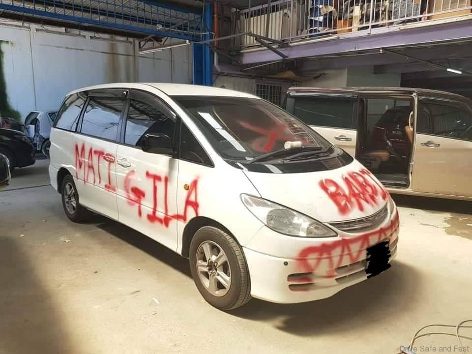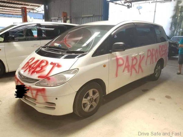 Now we see this act of vandalism and we ask, is this going too far? Yes, this will really teach this Estima driver to never block another car, but this is vandalism and the repainting cost at the cheapest will be at least RM2,000.00. It is clear that the person with the spray can wanted to make a statement and they did it well by vandalising all four sides of this MPV.