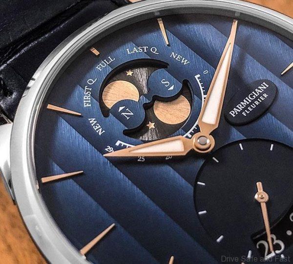 The highly contemporary moon phase has a display showing the two hemispheres, a calibrated scale corresponding to a lunar month of 29 and a half days, and rose gold discs reproducing the lunar cycle on the dial: new moon, first quarter, full moon and last quarter. The moon phase of this new Tonda 1950 requires correction once every three years.