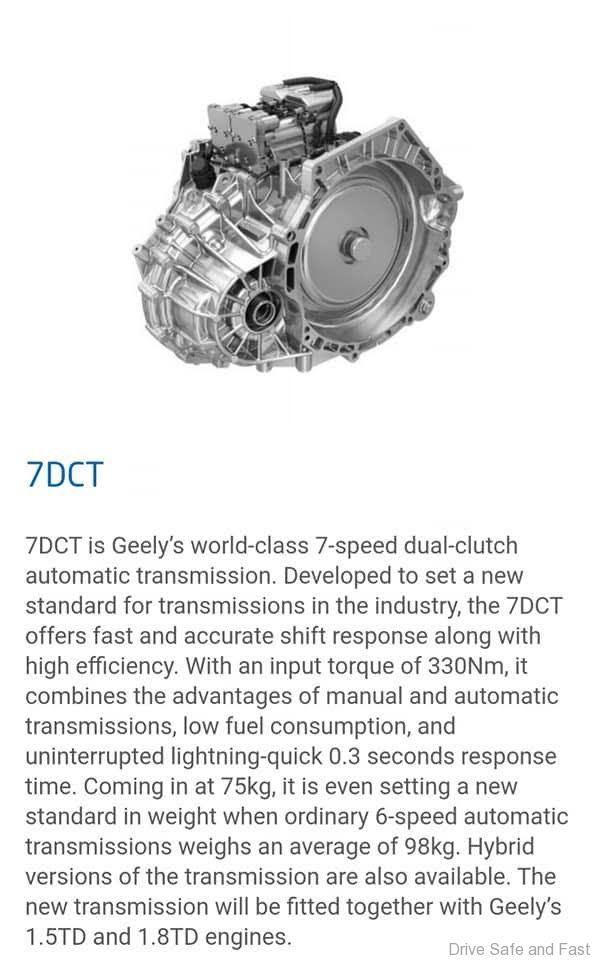 The biggest interest in this crossover is its drivetrain which is a 1.5L direct injection turbo petrol engine, co-developed with Volvo (Geely owns Volvo and so they are tapping into their own engineering resources to get the best), which is good for 130kW and 255Nm. Geely claims a 0-100km/h time in 7.9 seconds which is not too bad for a compact crossover. A 7-speed wet dual-clutch transmission is paired with the 1.5L turbo, which work together to deliver a combined city/highway fuel consumption rating of just 6.1L per 100km.