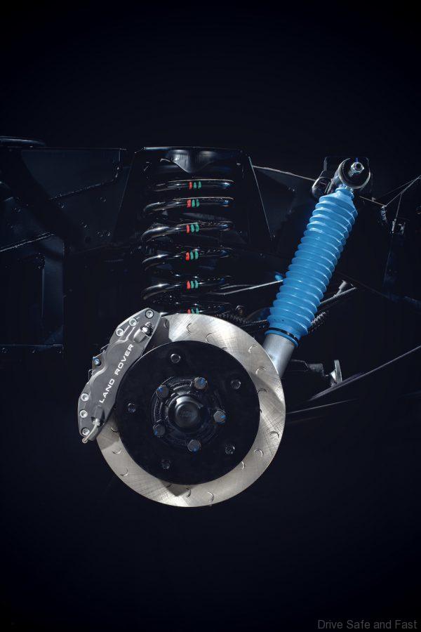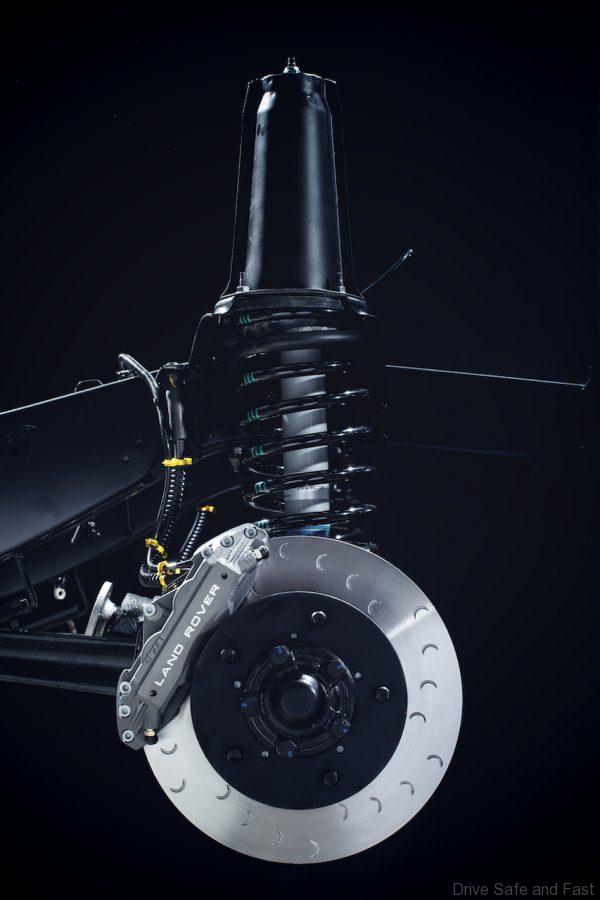 The Defender Handling Upgrade Kit adds uprated Works V8 specification brake discs, pads and calipers to the 18-inch Sawtooth alloy wheels and enhanced suspension.
